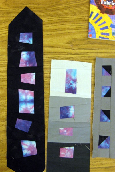 of working with other Raincross Quilt Guild members and learning new techniques for your quilting. Janet T is hosting a group that meets after the guild meeting where members show how they've played with scraps from their stashes. The group is using Quilters Playtime by Dianne Hire. Here's a review by Sarah Bellum at Amazon: "I am a quilter who absolutely loves playing with fabric and hates measuring. Dianne's book is my dream workbook--it's full of ways to play with your fabrics and learn new approaches to creating a beautiful quilt, and encourages a playful, risk-taking spirit. The book is divided into different "games," like Hopscotch, where you create a series of narrow, then wide, then narrow pieces that really do look like the hopscotch..."(read more here) Sarah shared the group's first playtime results. Call her for which game they'll be playing next.