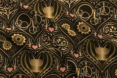 | Golden Steampunk Love fabric on Spoonflower by Robin Pickens |